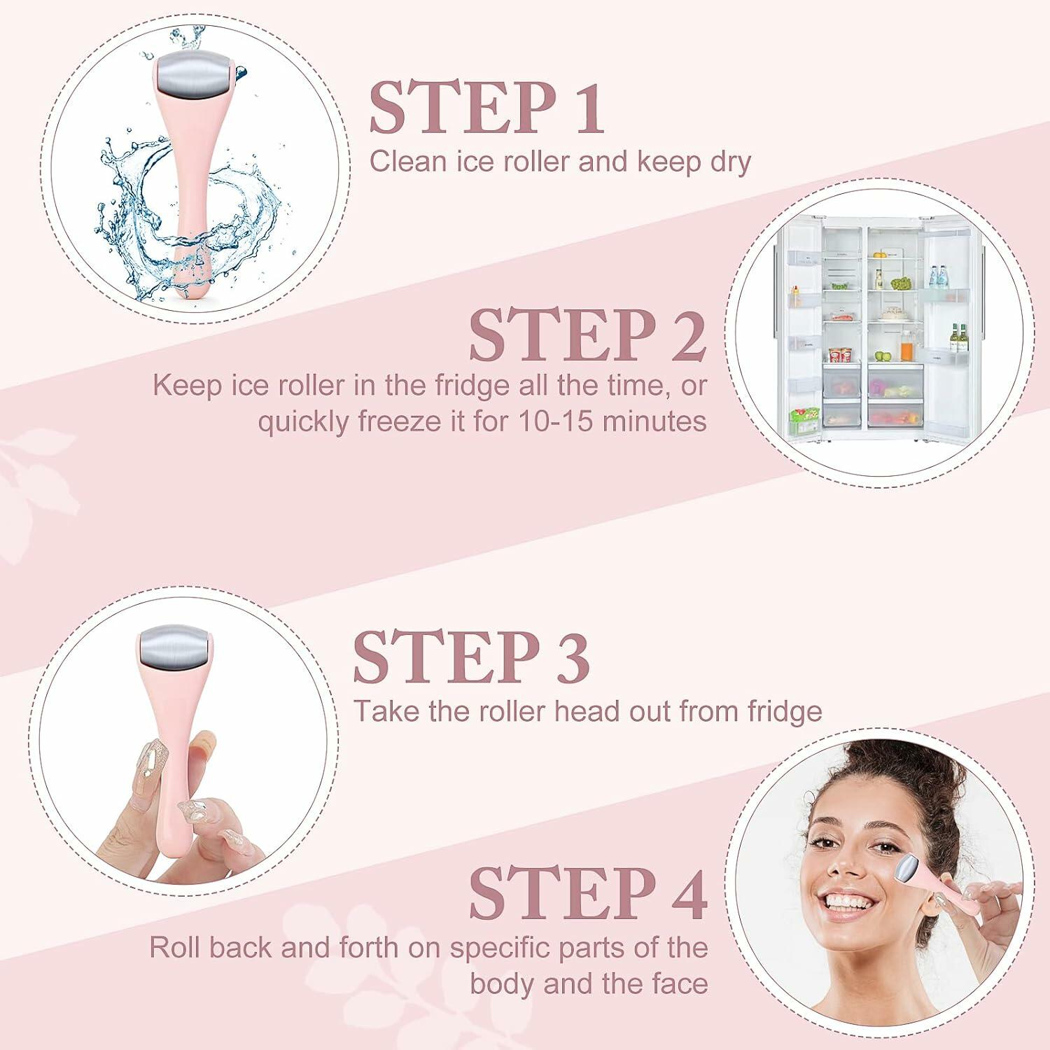 Store it in the refrigerator and use it after washing your face in the morning or evening. The ergonomic handle ensures a comfortable grip, while the roller head glides smoothly over the skin, making it easy to use and portable enough to fit in your bag.